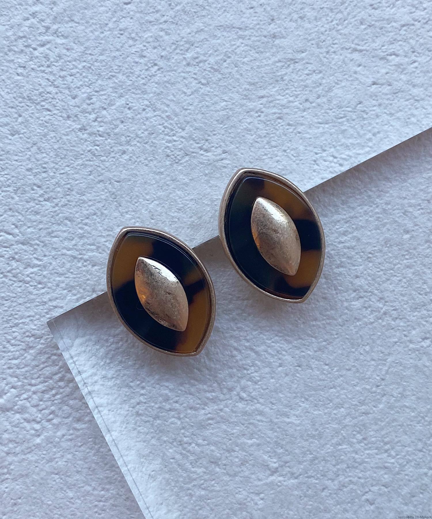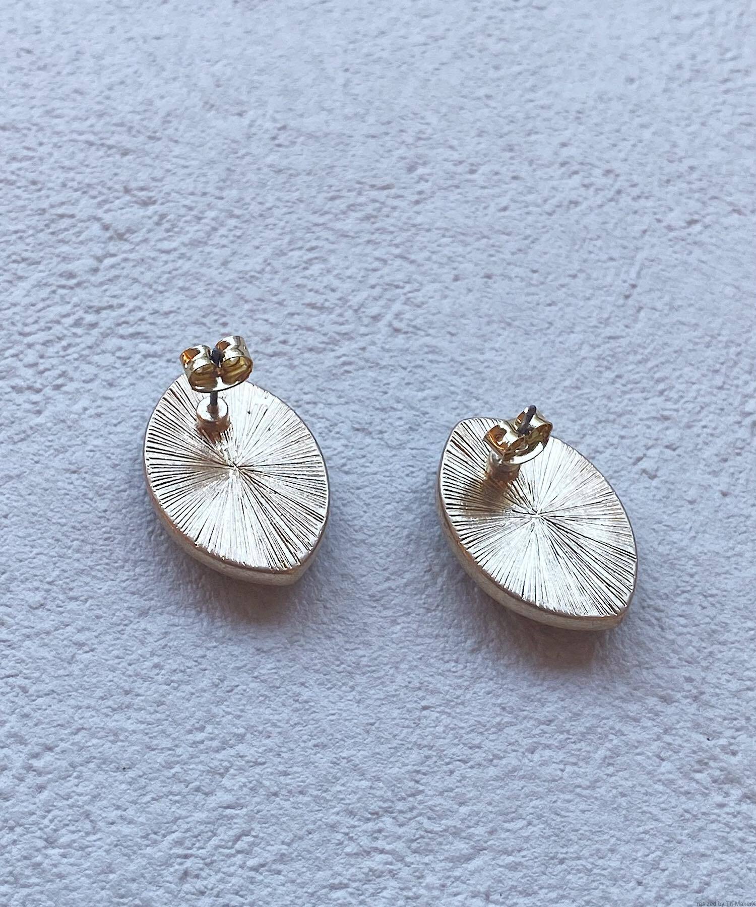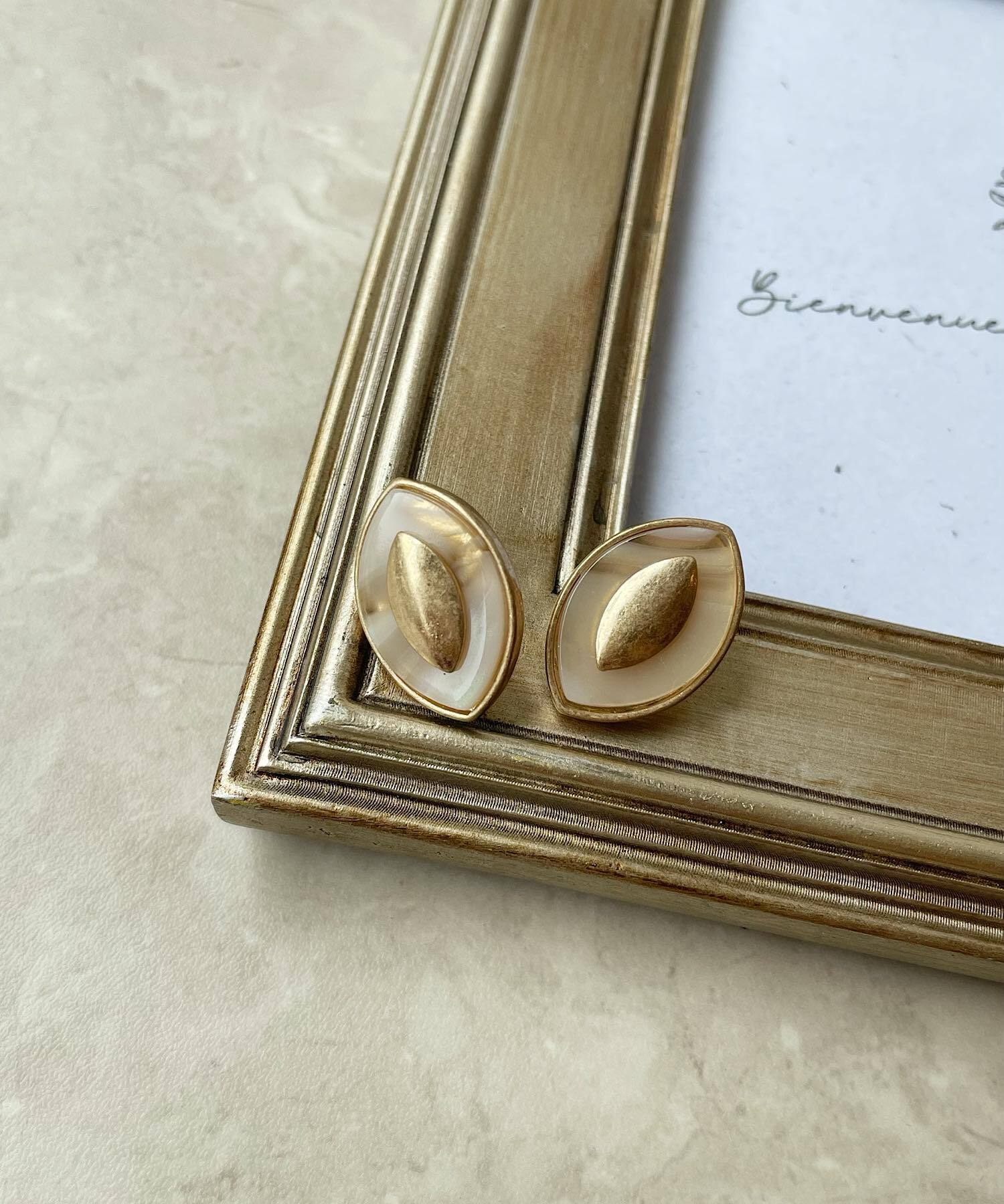 オーバルシェイプのパールをシェルパーツが囲むピアス。