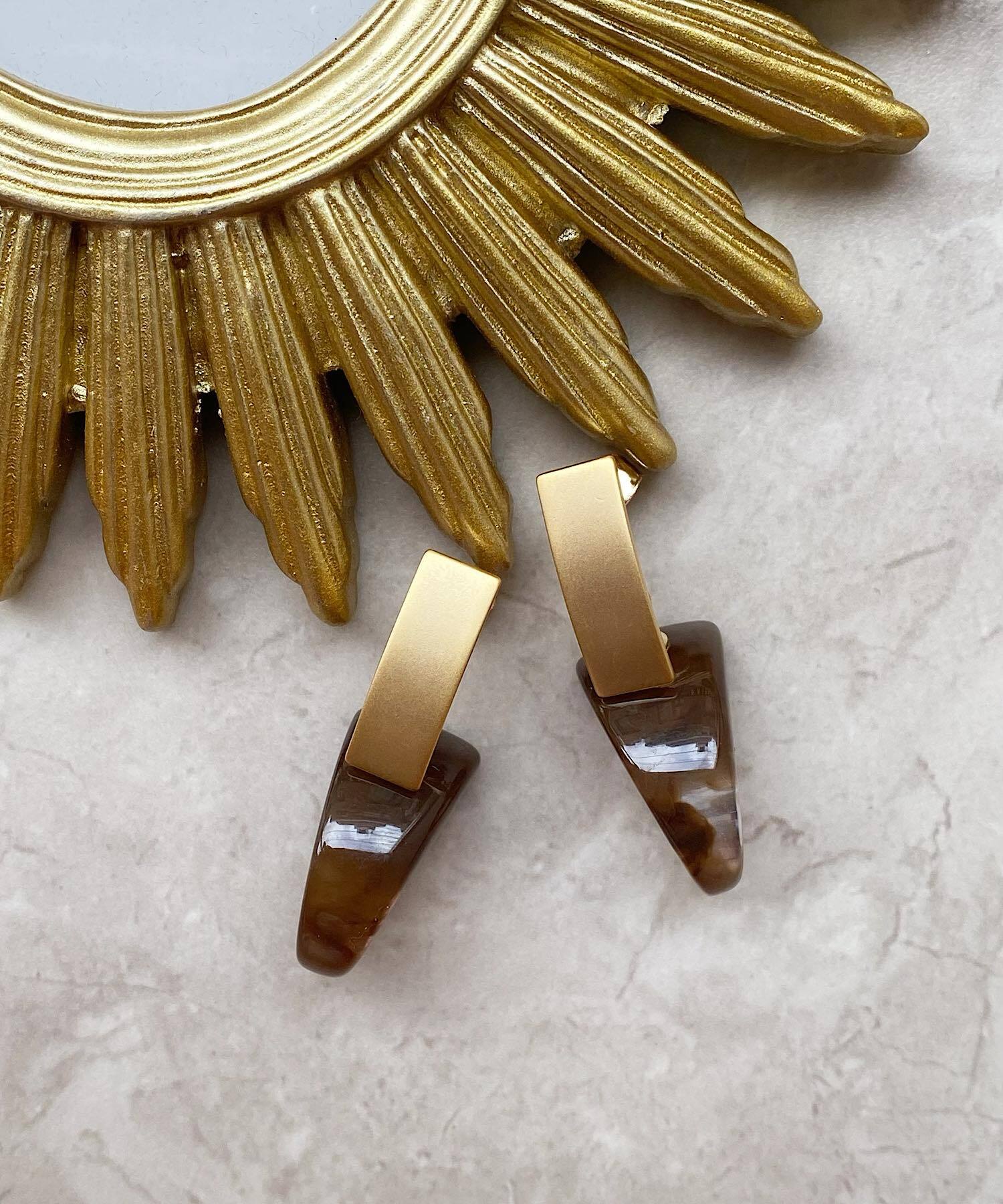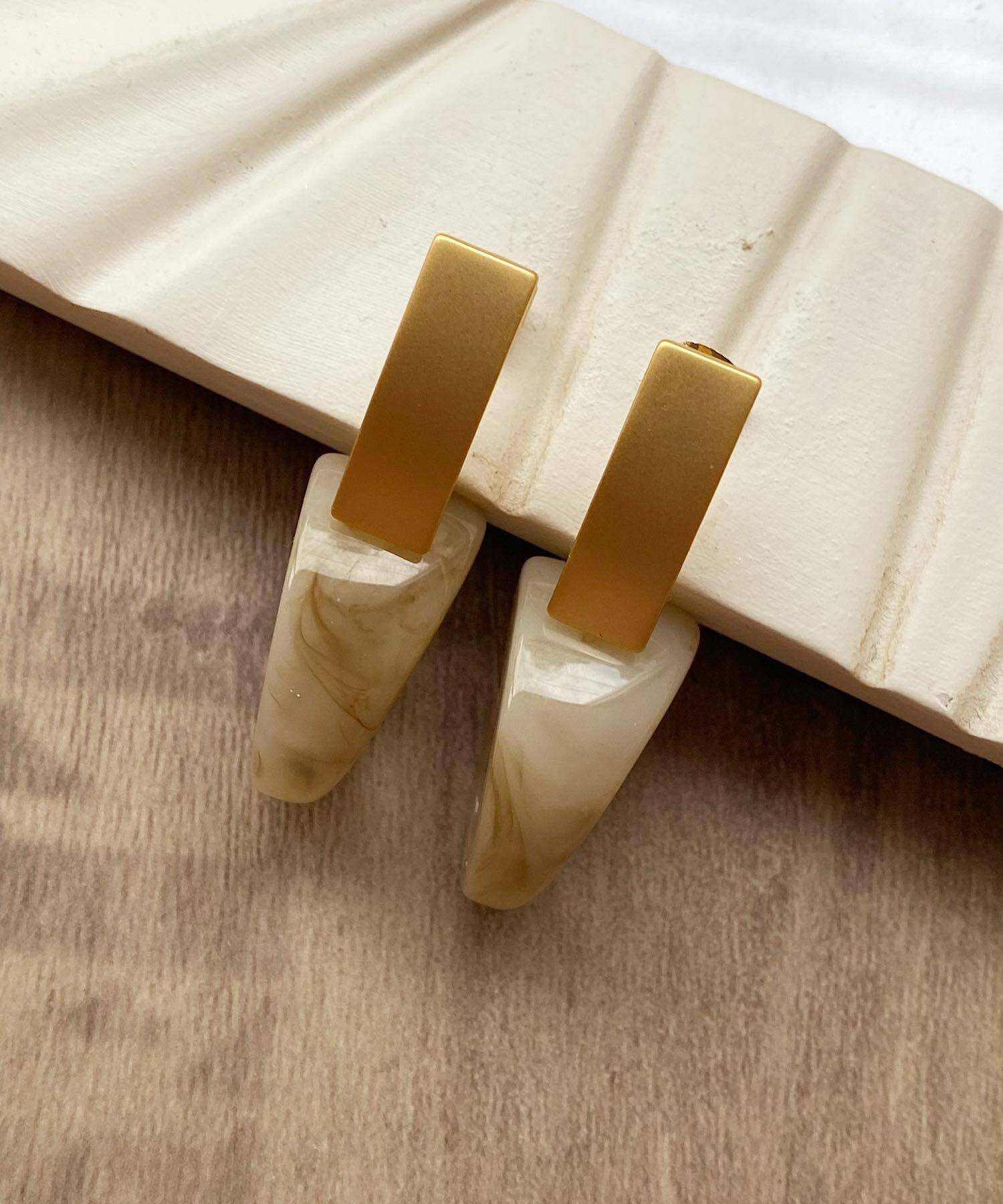 メタルバーとマーブルストーンを組み合わせたピアス。